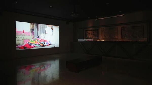 There is also an intertextuality between the Chinese and the English titles. "Huǎn Cún Zài / 缓存在" is a combination of two words: huǎncún / 缓存 (cache) and cúnzài / 存在 (being). Huǎn / 缓 (with the silk radical) means slow, moderate, or postponed; it belongs to the radical of Mì. Meanwhile cúnzài / 存在 is the equivalent of the philosophical term "being". Huǎn Cún Zài could be understood as "postponed-being" or "cached-being", and huǎncún is the translation of "cache" in computerese but could literally mean "storing / existing slowly", which is the daily life situation of the pandemic.