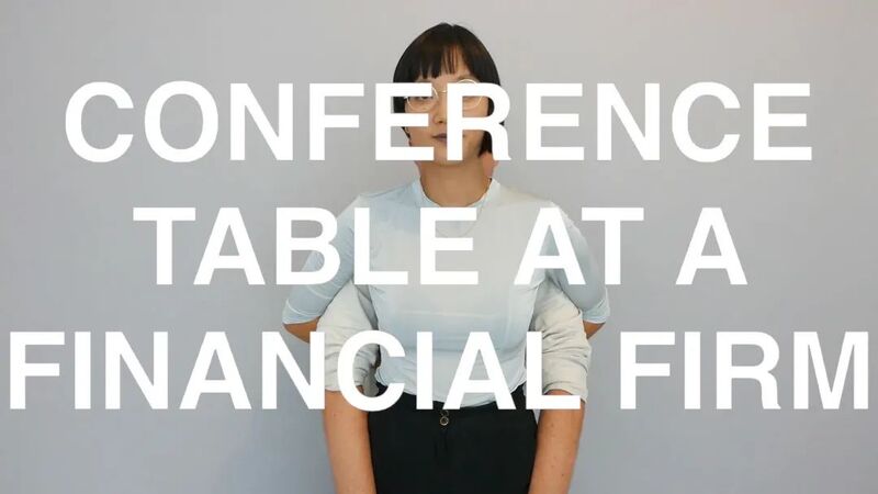 另一种无声,出现在《桌子和窗户》作品中。克里斯汀·孙·⾦ & 汤玛斯·⻢岱尔(Christine Sun Kim & Thomas Mader)两位艺术家分工使用表情和手势,表演了一出“手语双簧”。他们借用了经典即兴表演游戏“helping hands”的形式:面部表演者和手势表演者前后站立[超过一半的美国手语(ASL)是通过面部而不是手势传达的],后者伸出手臂与前者的面部表情配合,共同演绎出对各种桌子和窗户精准的描述。两位情侣艺术家身体之间的空隙形成了一个私密的“缓存空间”,爱人之间的思绪情绪在其中隐形地交流牵连,这或许也是面对繁复世界的“净因”之一。