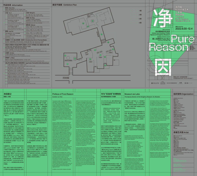 作为一个在博物馆中展开的公共项目、献给杭州的城市项目,以及杭州纤维艺术三年展探索自身边界的实验项目,“净因 | Pure Reason”计划期待能够以艺术的创造力与想象力对话激发本土记忆,在持续的生长中与广大的市民观众不期而遇。从主题中反映出的不同文化传统之间的深刻义理交流、互译,也在体现着杭州这座“亚运之城”的包容与涵养。