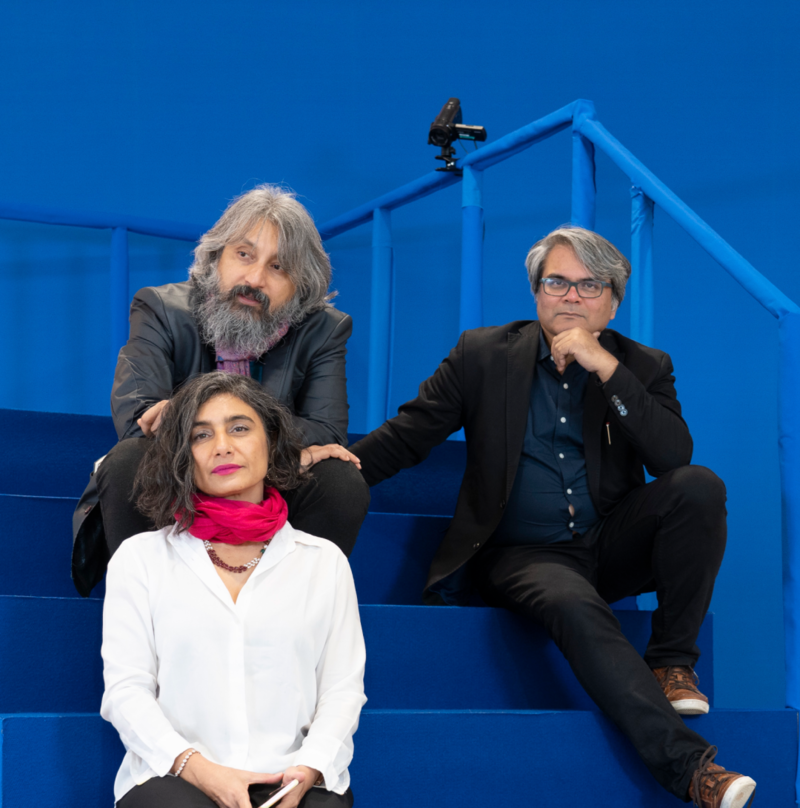 Raqs媒体小组1992年创立于印度德里,成员包括Jeebesh Bagchi、Monica Narula和Shuddhabrata Sengupta。“Raqs”一词来源于波斯语、阿拉伯语和乌尔都语,原意是指反复修行的苦行僧在旋转舞中进入的出神状态,恰似三人以他们特有的方式和独特的洞察力周旋和思索在历史与当下,融合东西方语境进行智性诗意的艺术实践,包括艺术创作、表演、写作、策展展览,并在当代艺术、哲学思辨和历史研究的交汇处占有独特的位置。